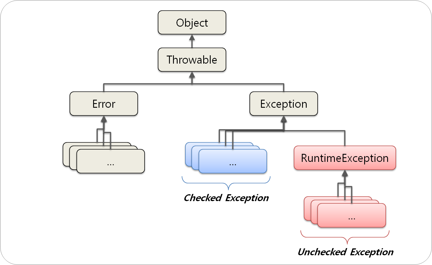 즉, 사용자가 직접 구현하는 unchecked throwable은 모두 RuntimeException의 하위 클래스여야 한다.
