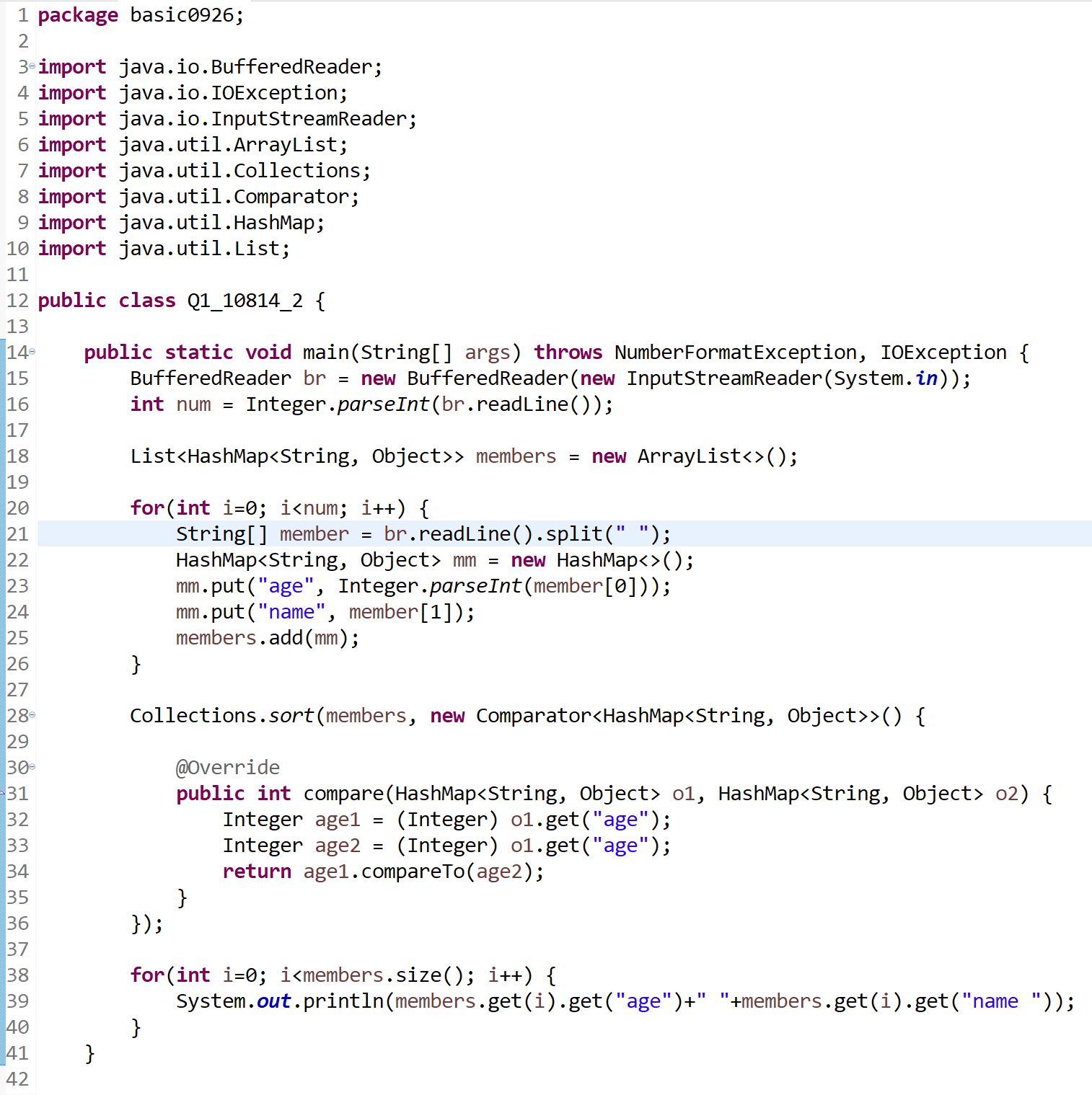 1. 나이, 이름의 정보를 입력받은 뒤에 나이를 기준으로 정렬한다.