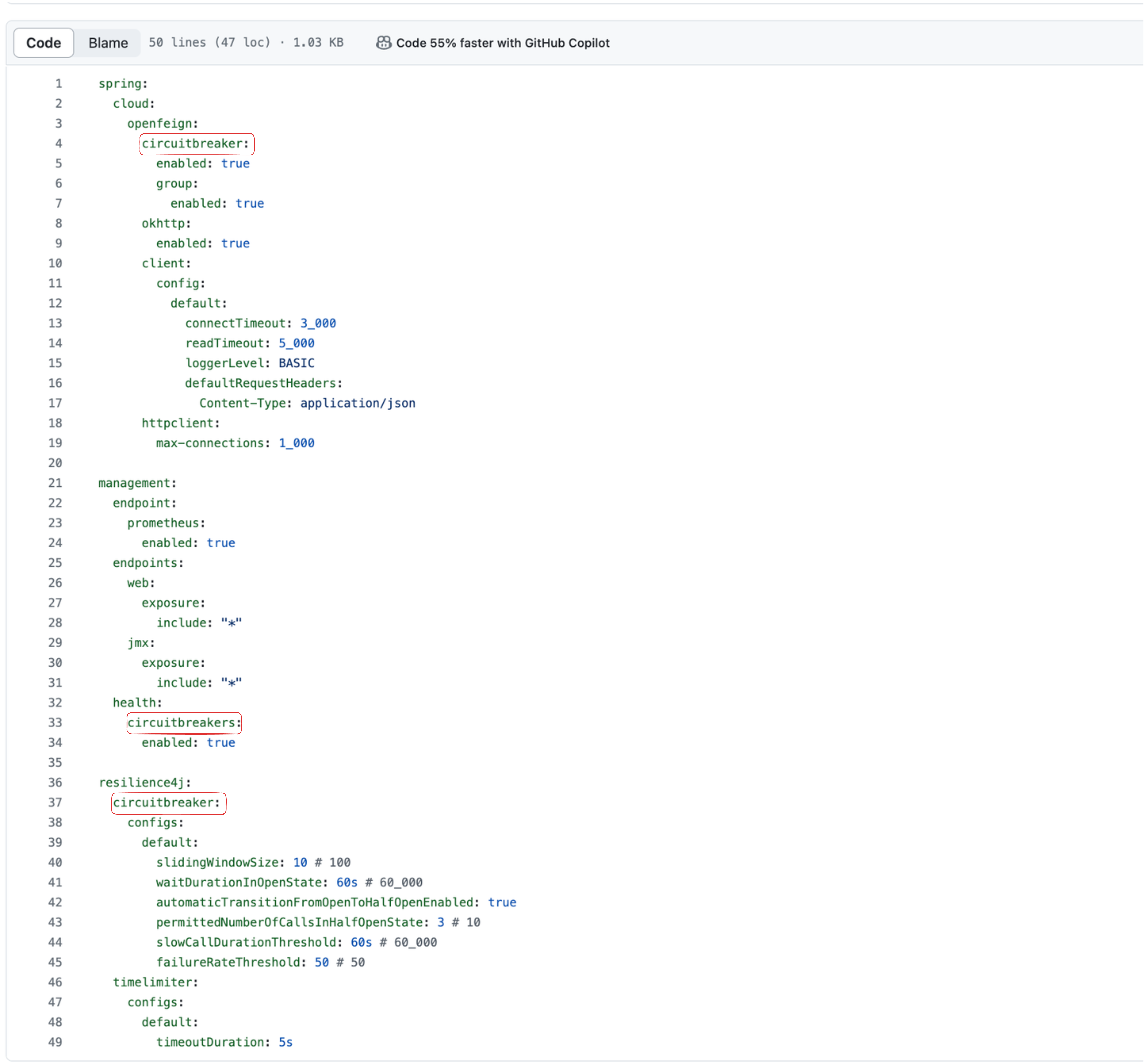그림 내부에서 더 긴밀하게 연결되는 관계가 있을 수 있지만, 제가 파악한 건 이 정도입니다. 그림을 그려보니 각 라이브러리들이 하는 역할도 대충 파악이 되고, 서로 어떤 연관을 맺고 있는지도 구조가 잡혔습니다. 다시 application.yaml 파일로 돌아가서보면 설정 값에 왜 circuitbreaker 키워드가 존재하는지 알 수 있습니다.