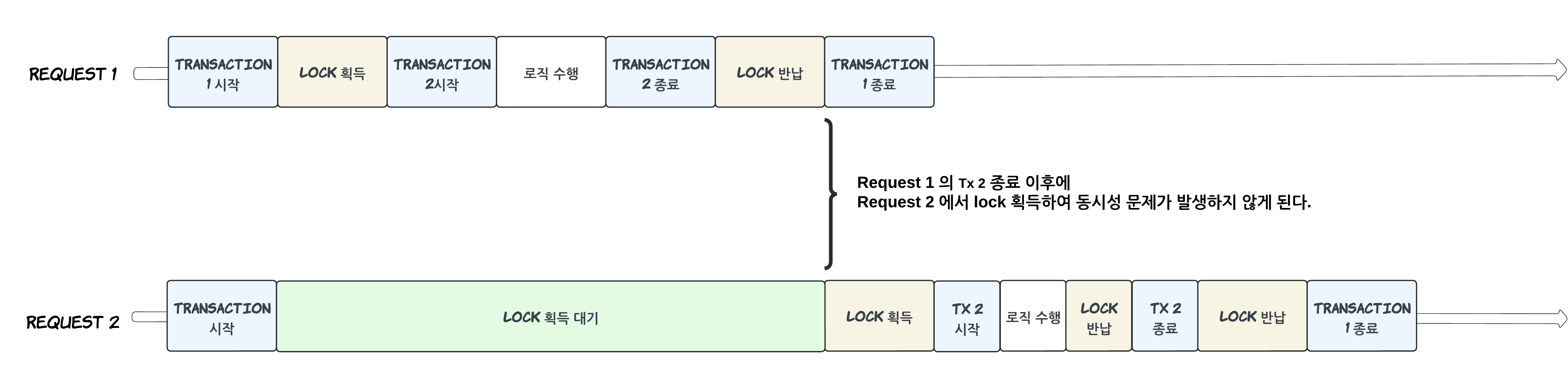 동시성 문제없이 정상적으로 처리할 수 있게 되었는데요, 처리 흐름을 그림으로 파악하자면 다음과 같습니다.