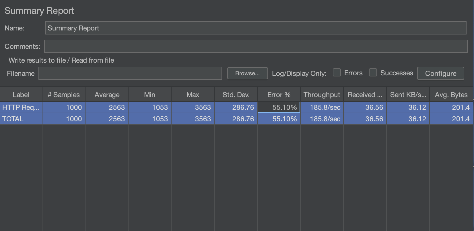 마찬가지로 에러율 없이 성공한 것을 볼 수 있습니다.