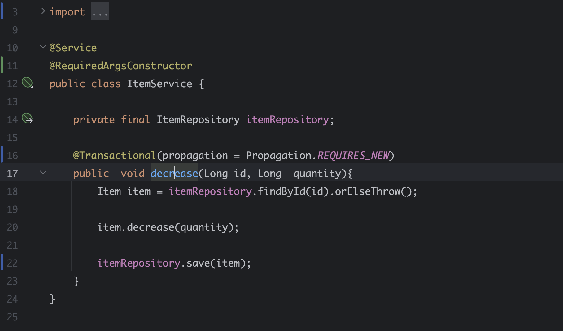 ItemRepository.findById 메소드는 JpaRepository에서 기본 정의되어 있는 QueryMethod를 활용한 것이며 JMeter를 활용하여 decrease() 메소드를 1000번 실행시켜보았습니다.