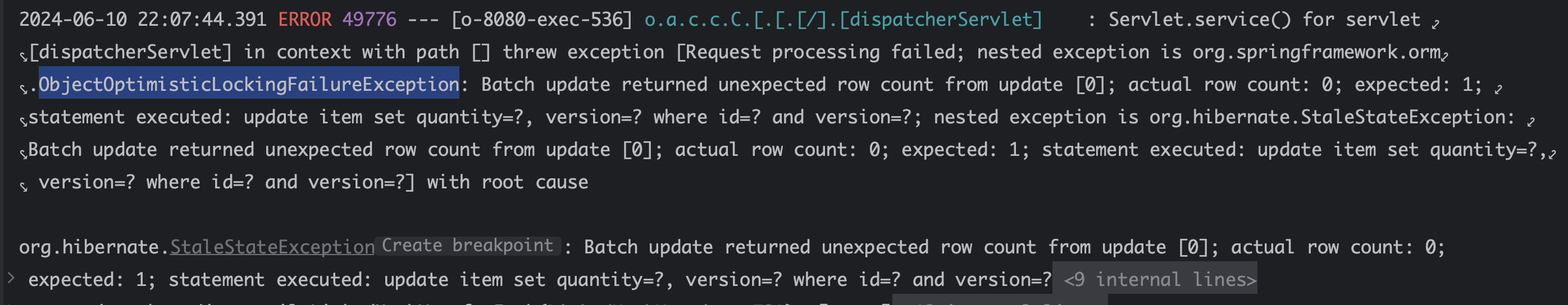 마찬가지로 ObjectOptimisticLockingFailureException 예외가 발생했습니다.