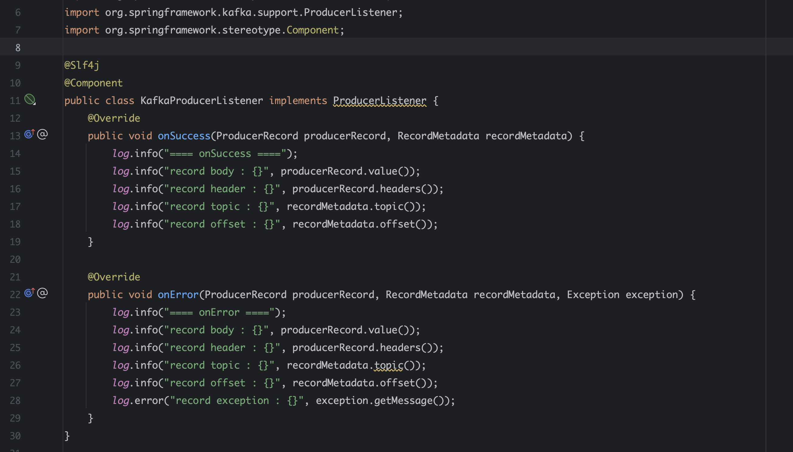 Spring Kafka 에서는 Producer 전송 결과를 수신하는 ProducerListener 를 제공합니다.