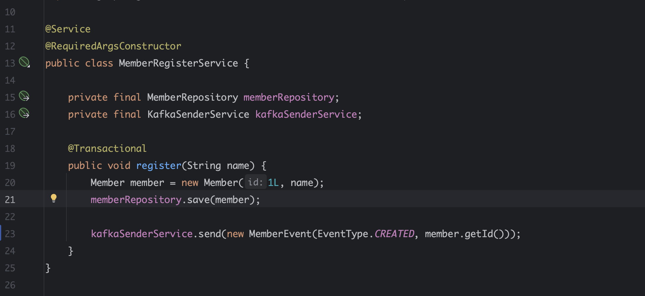 Kafka 메세지 발행을 트랜잭션 내부에서 실행하는 경우, 트랜잭션 커밋 성공 여부에 따라 메세지를 컨트롤하고 싶을 때 다음 내용을 이해해두면 좋을 것 같습니다. 트랜잭션 이후, 이벤트를 발행하기 위해서는 먼저 Kafka Transaction 을 설정해야합니다.