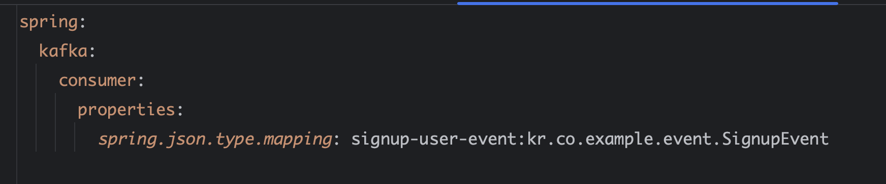 역직렬화 시에는 type=signup-even t처럼 클래스명이 아닌 alias만 포함되고, 리팩토링도 안전하게 수행할 수 있다. 아니면 Kafka Consumer 쪽에서 헤더에 담긴 alias 를 실제 클래스명으로 변환할 수 있도록 매핑하면된다.