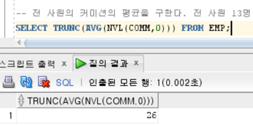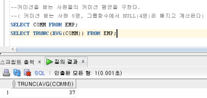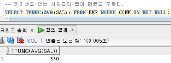 SELECT COMM FROM EMP; SELECT TRUNC(AVG(COMM)) FROM EMP;
