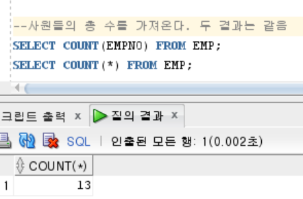 SELECT COUNT(EMPNO) FROM EMP; SELECT COUNT(*) FROM EMP;
