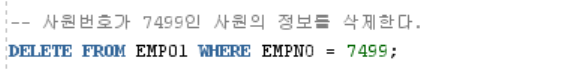 DELETE FROM EMP01 WHERE EMPNO = 7499;