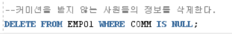DELETE FROM EMP01 WHERE COMM IS NULL;