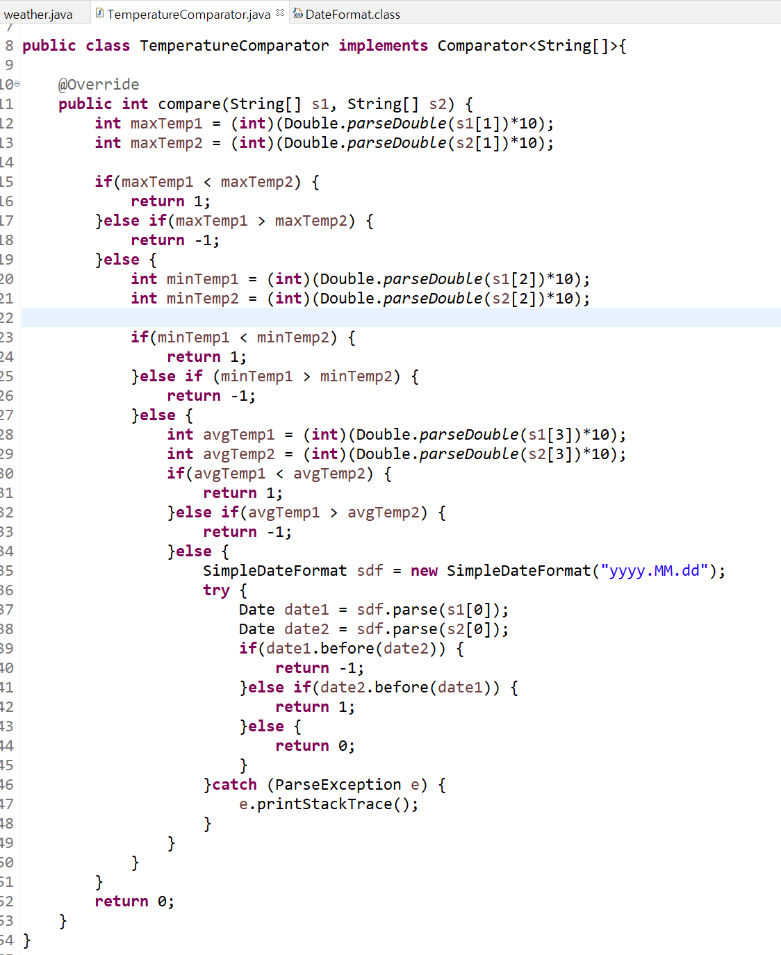 우선 내가 풀었던 소스엔 평균 기온에서 return 값을 1이어야 할 것은 -1로 , -1이어야 할 것은 1로 적어놓았다...(실수;)