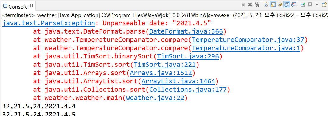 SimpleDateFormat을 data.csv 파일 안에 있는 날짜 포맷으로 맞춰주었다.