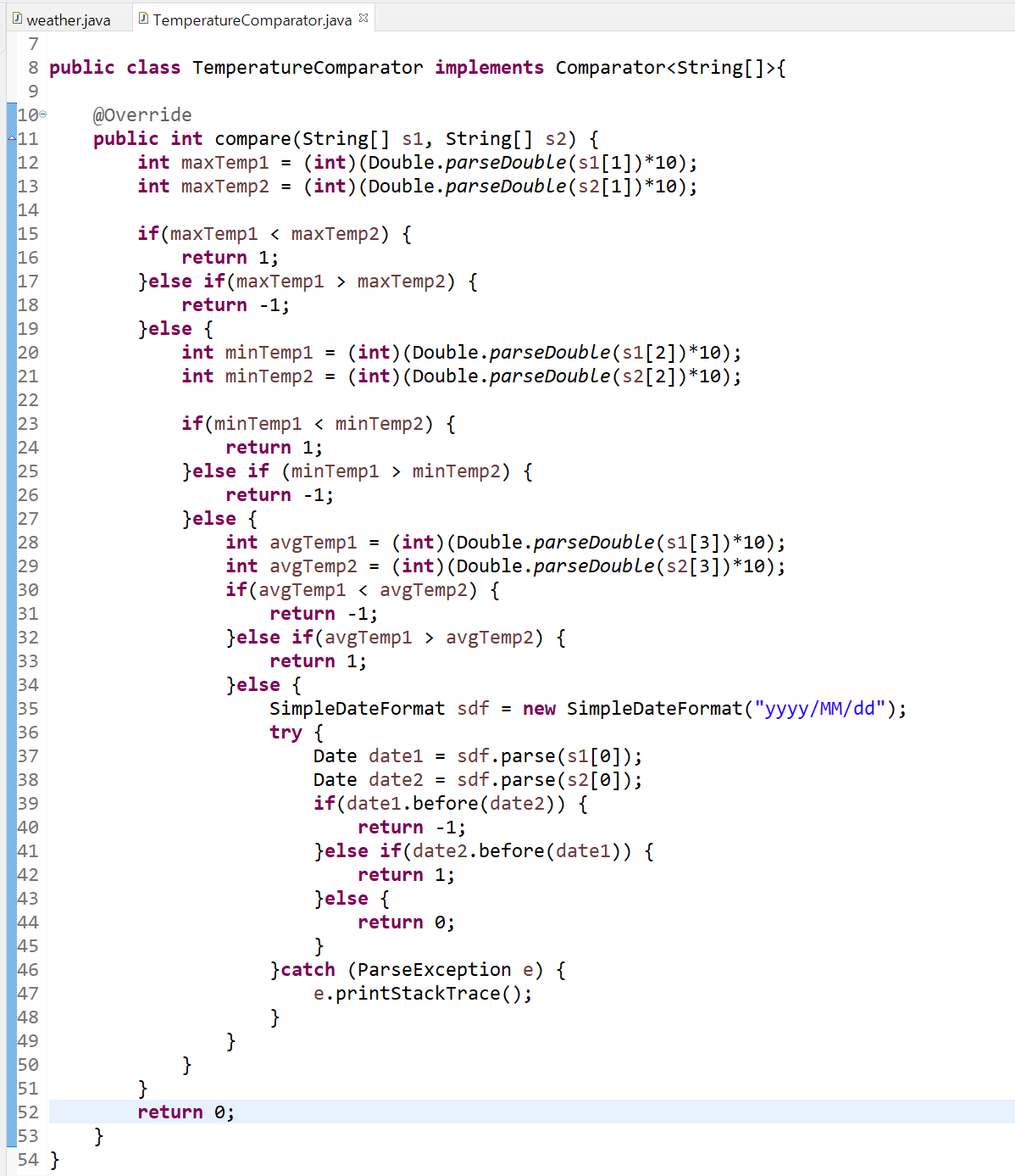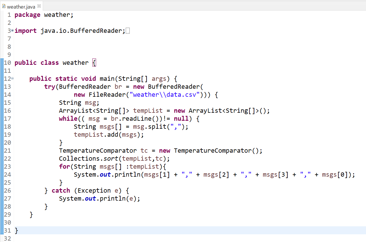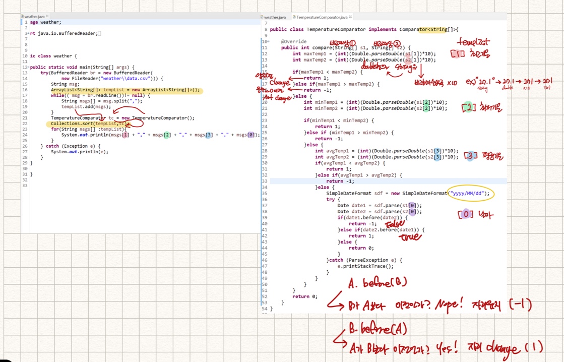 로드하는 파일은 data.csv이며 정렬 순서 구분을 하기 위해 Temperature Comparator 클래스 정렬을 사용합니다.