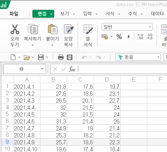 SimpleDateFormat을 data.csv 파일 안에 있는 날짜 포맷으로 맞춰주었다.