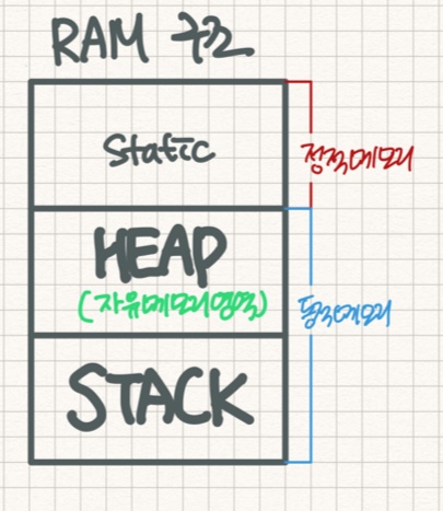 - HEAP, STACK ๋ฉ๋ชจ๋ฆฌ๊ฐ ์ฌ๊ธฐ์ ํด๋นํ๋ค.