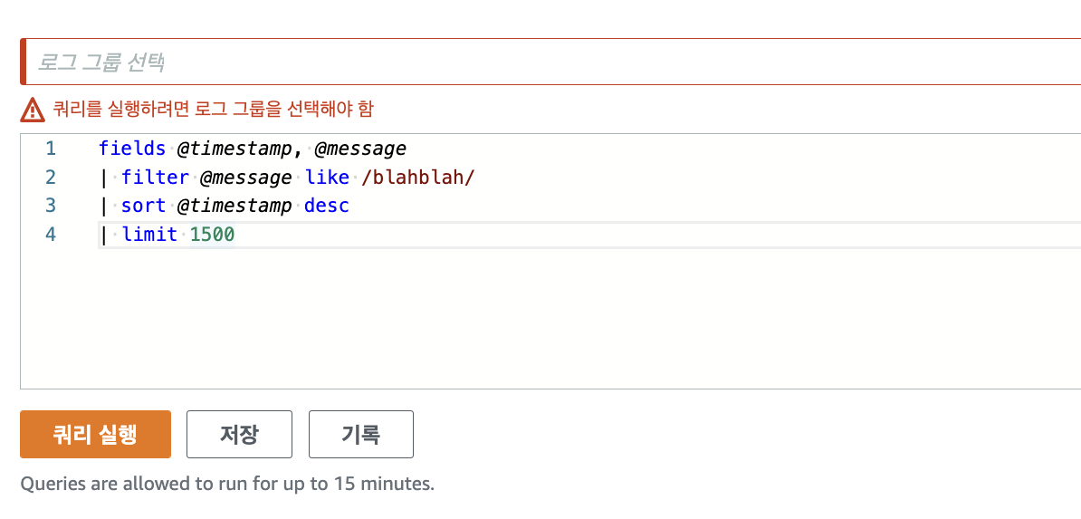 📌 Limit : 쿼리에서 반환되는 로그 이벤트 수를 지정한다.