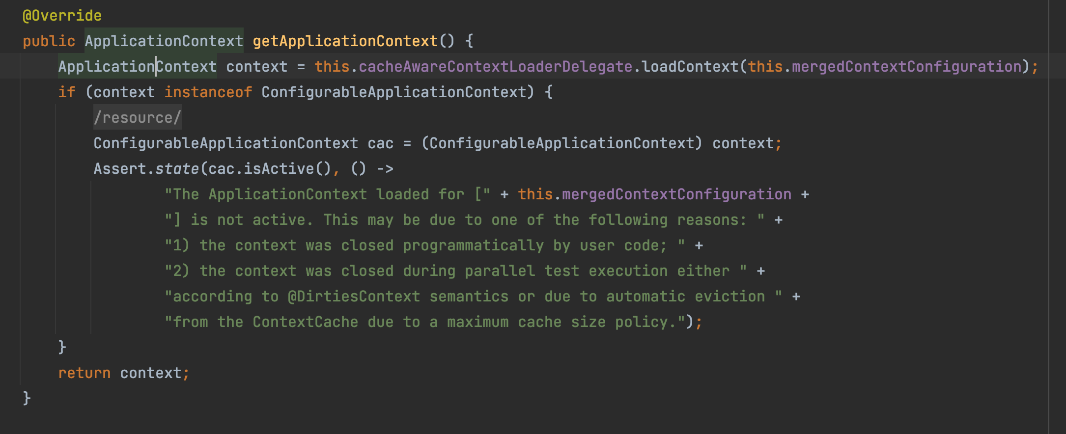→ cacheAwareContextLoaderDelegate.loadContext 을 통해 ApplicationContext가 생성된다!