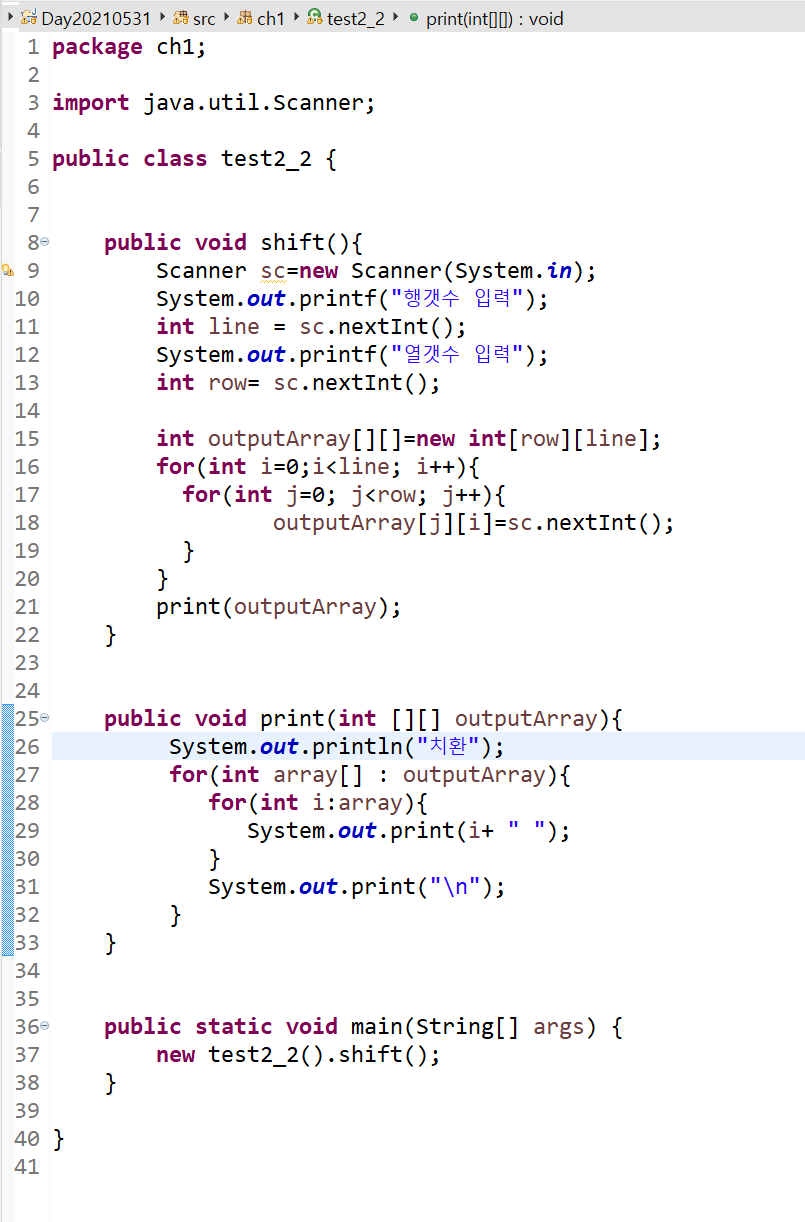 21 print(2차원배열)메소드를 부른다
